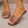 Fashion Open Toe Flat Metal Flip-Flops for Women 2025 New Fashion Beach Non-Slip Rivet Sandals and Slippers