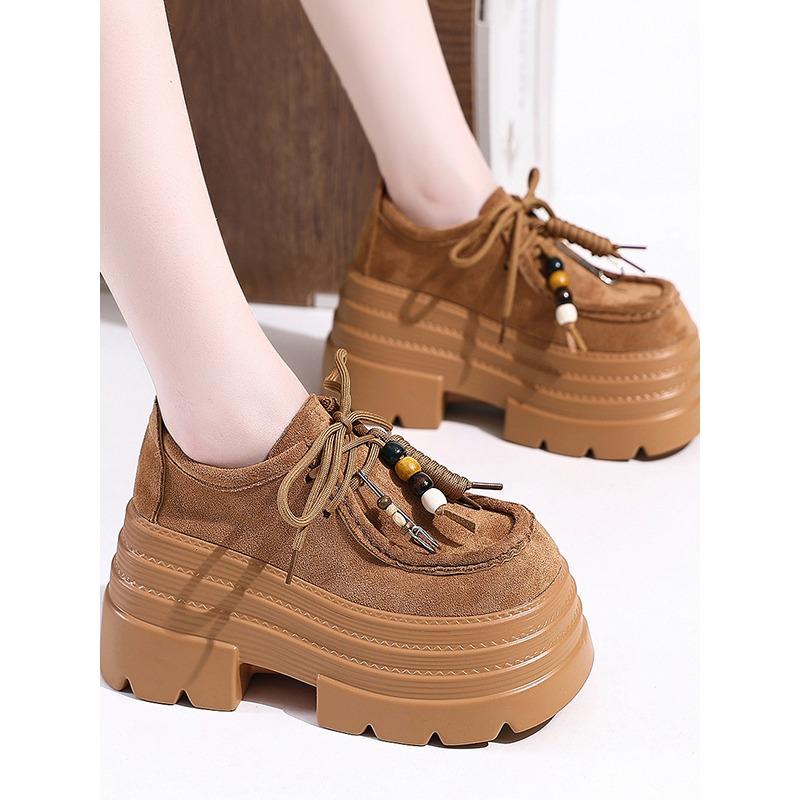 Мода 2025 Осінь Жіночі Шкіряні Кросівки Висока Платформа На Шнурівці Повсякденне Взуття Товста Підошва 10 См Підбори Взуття для Ходьби Zapatos Mujer