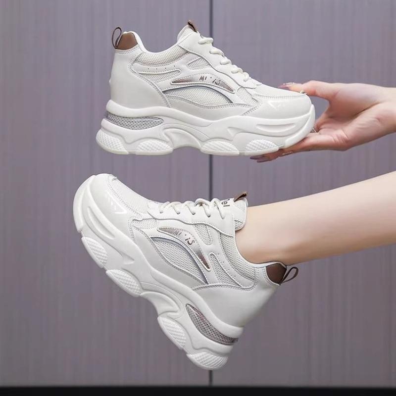 Autumn new versatile little white shoes inner height increase mesh breathable sports shoes women's thick-soled casual dad shoes women