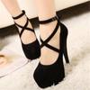 Fashion Shoes Woman Pumps Cross-tied Ankle Strap Wedding Party Shoes Platform Dress Women Shoes High Heels Suede Ladies Shoes Plus Size