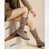 Pile boots women's western cowboy boots 2025 new small tall knight boots retro suede pleated boots