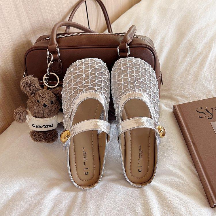 Mesh breathable half slippers women's summer wear 2025 new silver one-pedal fisherman shoes bag head flat-bottomed cool slippers
