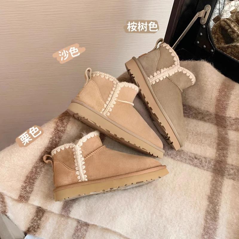 [sheii Su Yinyin] Snow Mist Island~ Hand stitching and velvet flat-bottomed lamb wool short boots women's snow cotton boots