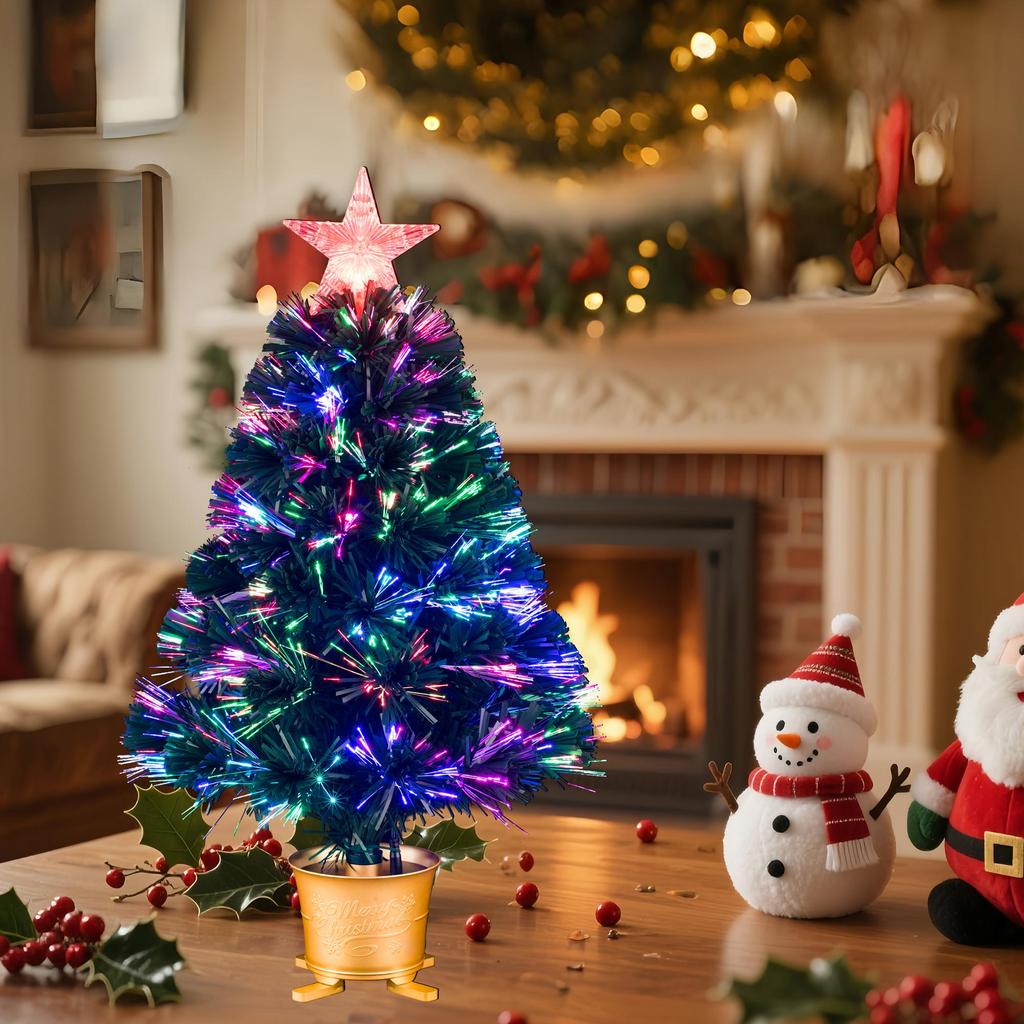 Міні волоконно-оптична настільна різдвяна ялинка з прозорою зіркою на верхівці YUETJIN 60 см заввишки зелена ялинка