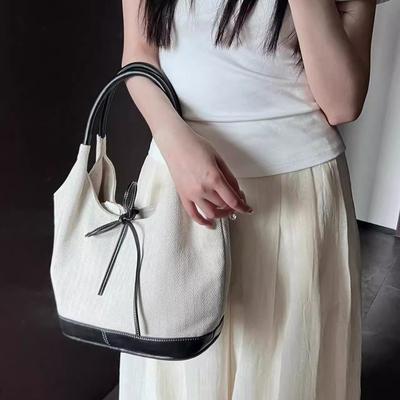 Casual summer small bag women's new light luxury simple canvas oblique span bag shoulder tote bucket bag