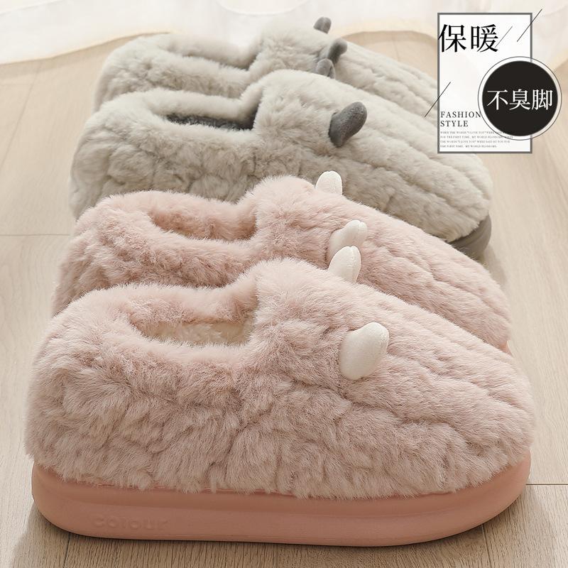 Bag heel cotton slippers winter cute cartoon plush warm wool slippers non-slip home cotton shoes autumn and winter