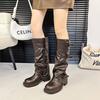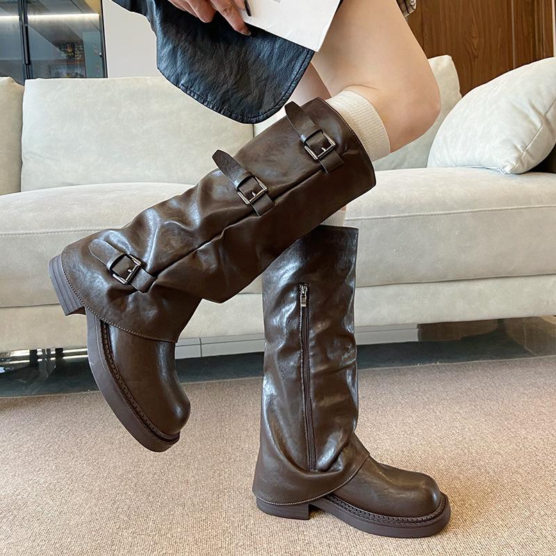 25-922 retro thick heel mid boots knight boots 2025 spring and autumn new thin pile small short boots niche women's shoes