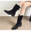 Autumn and Winter New Women's Ankle Boots Cow Suede Leather Shoes for Women Pointed Toe Short Boots Chunky Shoes Western Boots