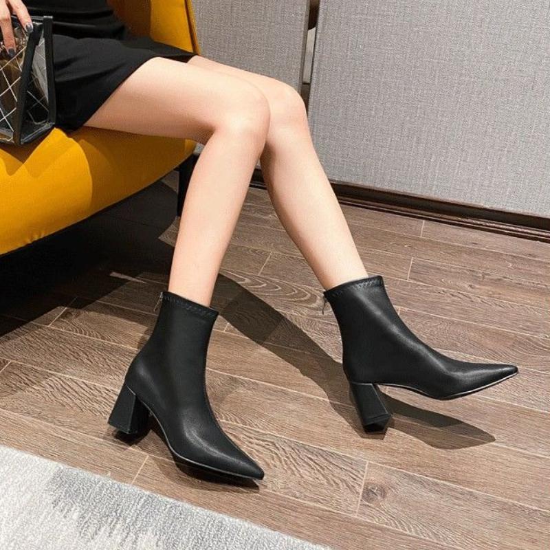Жіночі черевики на підборах до щиколотки з гострим носком шкіряні жіночі короткі туфлі осінньо-зимові теплі ботильйони дизайнерські розкішні готичні гаряче взуття