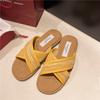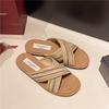 Flat-bottomed retro woven cross-strapped cool slippers fairy shoes outer wear 2025 summer vacation beach roman slippers