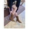 Sheepskin version~ retro niche suede string flanged thin heel cat and western cowboy boots women's short boots thin boots