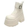 Нові Жіночі Хутряні Ботильйони на Щиколотці Товста Підошва Шкіряні Бойові Мотоциклетні Чоботи Осінь Зима Теплі Плюшеві Висока Платформа Зимове Взуття Жіноче 10 СМ