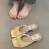 Designer Summer Butterfly-knot Lace Women Slippers Casual Thick Low Heel Dress Street Style Slides