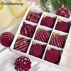 12pcs/box Red Dark Velvet Christmas Balls Christmas Tree Decor Hanging Balls Ornaments Plush Ball Christmas Decor