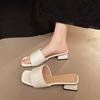 Large size thick heel cool slippers women's summer wear 2025 new fashion out one-word drag new Chinese style summer