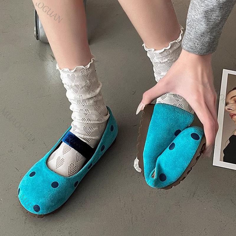 Fashion Shallow Mouth Mary Jane Ballet Single Shoes Spring and Atutumn New Polka Dot Flats Casual Slip on Round Toe Soft Sole Loafers