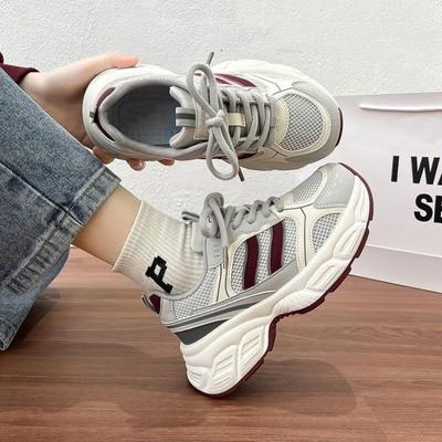Platform shoes dad shoes summer new breathable mesh heightening leisure sports campus style women's shoes