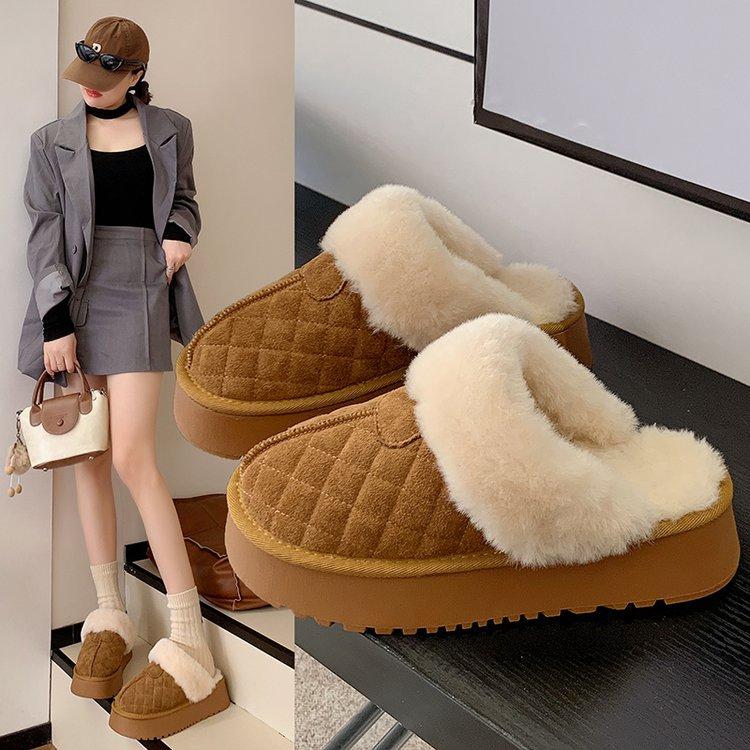 Baotou half slippers women's autumn and winter outer wear 2025 new thick bottom heightening piled cotton warm home cotton slippers
