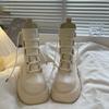 Fashion 2025 Women Boots Spring Autumn Students Casual Fashion Shoes Lace-up Cross-tied Solid Round Toe Square Heel Boots