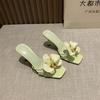 Flower Decoration Women Slippers Hawaiian Bohemian Vacation Style Women High Heel Slippers Square Head Open-toed Slippers Slides