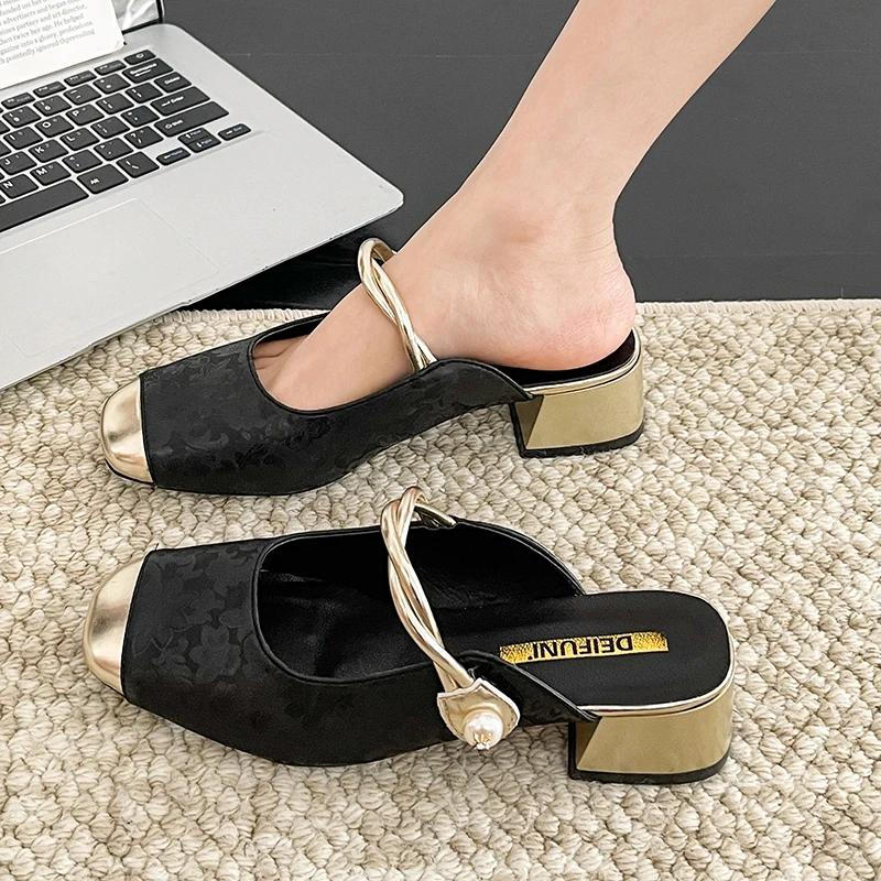 Spring and Autumn New Brand Square Toe Women's Thick Heel Slippers Fashionable Women's Elegant Low Heel Slip-On Sandals