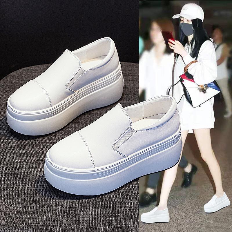 Round head casual single shoes women's spring 2025 new versatile fashion low-top foot muffin bottom thick sole increased by 10
