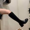 New round head versatile Martin boots leather medium heel large size women's boots round head autumn and winter solid color leather high boots