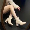 Весняно-осінні черевики Мартін скінні універсальні на високих підборах короткі жіночі 2025 блискавка ззаду товсті підбори гострий носок нові черевики-нюд темперамент