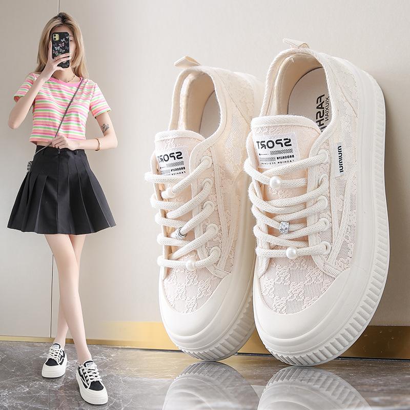 Little white shoes women's breathable mesh 2025 new popular summer thin biscuit shoes lace mesh shoes thick baseplate shoes