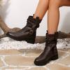 Round Scalp Belt Buckle Pleated Stack Boots 2025 Winter New Retro Plus Size British Style Thick Heel Martin Boots for Women