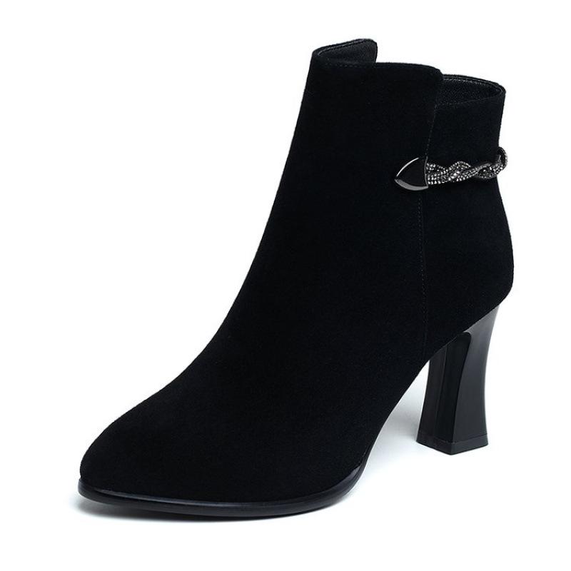 Frosted short boots women's autumn and winter 2025 versatile stiletto pointed boots high heel women's boots velvet fashion Martin boots