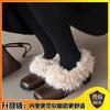 Cowhide version~ Square head fluffy shoes with fleece to keep warm retro Mary Jane small leather shoes thick heel single shoes temperament high heels