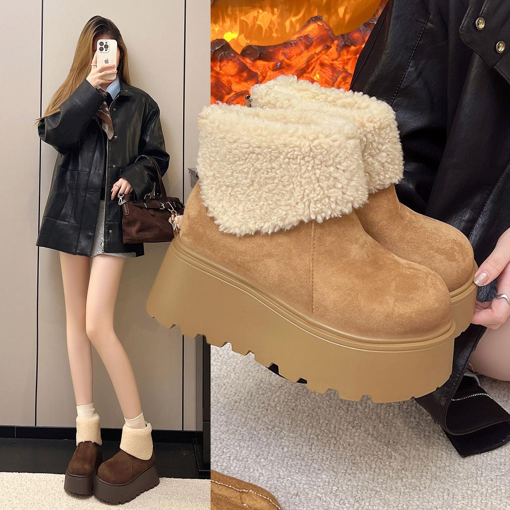 Women's elastic thick sole winter fur one warm cold padded snow boots non-slip wear casual sports short cotton boots