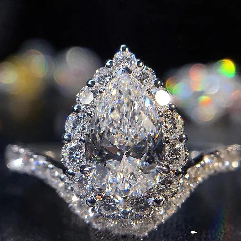 New Gorgeous Bridal Wedding Accessories Finger-Rings With Big Teardrop Cubic Zirconia Anniversary Ring Women'S Trendy Jewelry