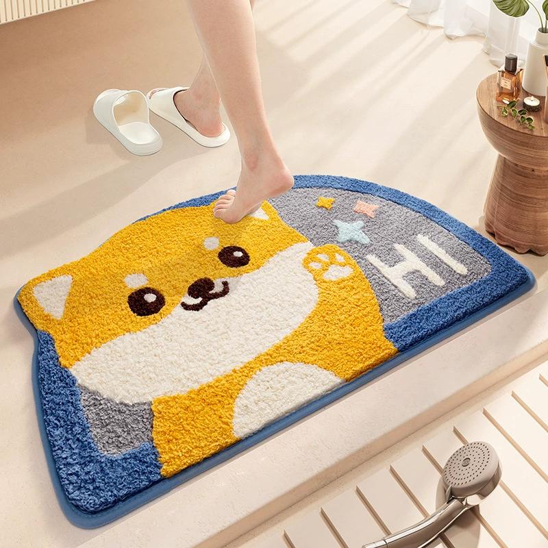 Cartoon Semi-Circular Bath Mats | Thickened Plush Non-Slip Bathroom Rug | Quick-Dry Super Absorbent Foot Mat for Bathroom Decor