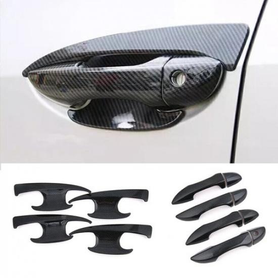 12Pcs Carbon Fiber Car Door Handle Bowl Cover For Toyota Corolla Altis 2014-2018