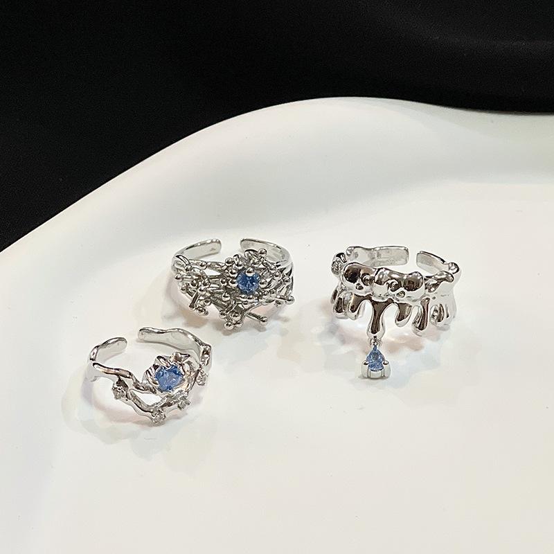 Original Design Niche Cold Wind Blue Zircon High Sense Irregular Folds Personality Open Ring Female