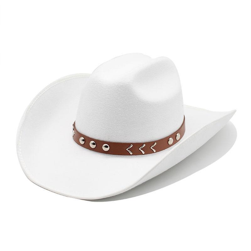 9.5 Великі Козирки Завиток Зверху Ковбойський Джазовий Циліндр Сезонний Вовняний Циліндр Простий Фетровий Капелюх