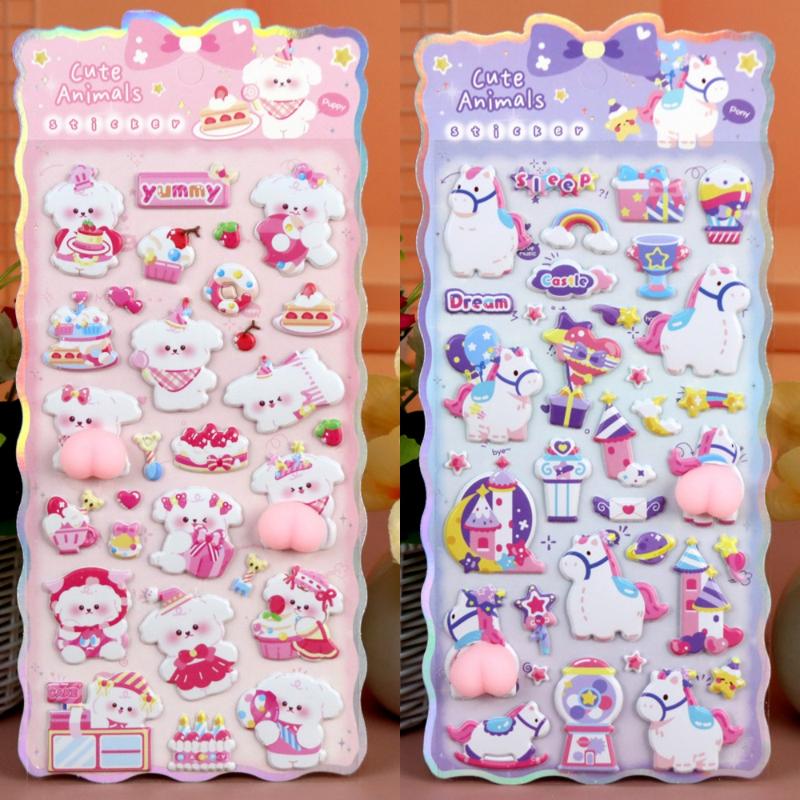 Каваї Мультяшний Тварина Собака Кіт 3D М'який Пухнастий Наліпки на Сідниці Милий DIY Чохол для Телефона Ноутбука Декорація Наклейка Іграшка-Декомпресія