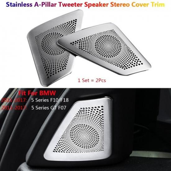 2Pcs Stainless Steel For BMW 5 Series F10 Car A Pillar Speaker Stereo Cover Trim