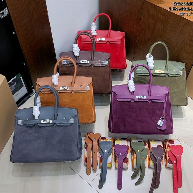 Retro hand-sewn, first layer swift cowhide suede BK25/30cm genuine leather handbag women's bag