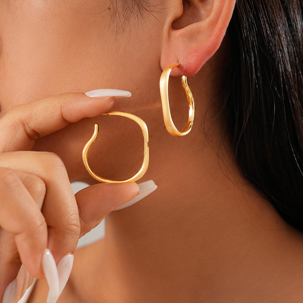 18K real gold electroplating irregular round silver needle stud earrings cold wind personalized earrings