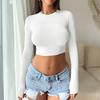 Elevate your autumn wardrobe with this chic and stylish crop top, designed specifically for the fashion-forward woman. Crafted from high-quality polyester fiber, this top offers both comfort and durability. Its solid pattern brings a classic touch, while the long sleeves provide the perfect balance between warmth and style for the cooler months. The round neckline adds a touch of elegance, making it a versatile piece that can be dressed up or down for any occasion.