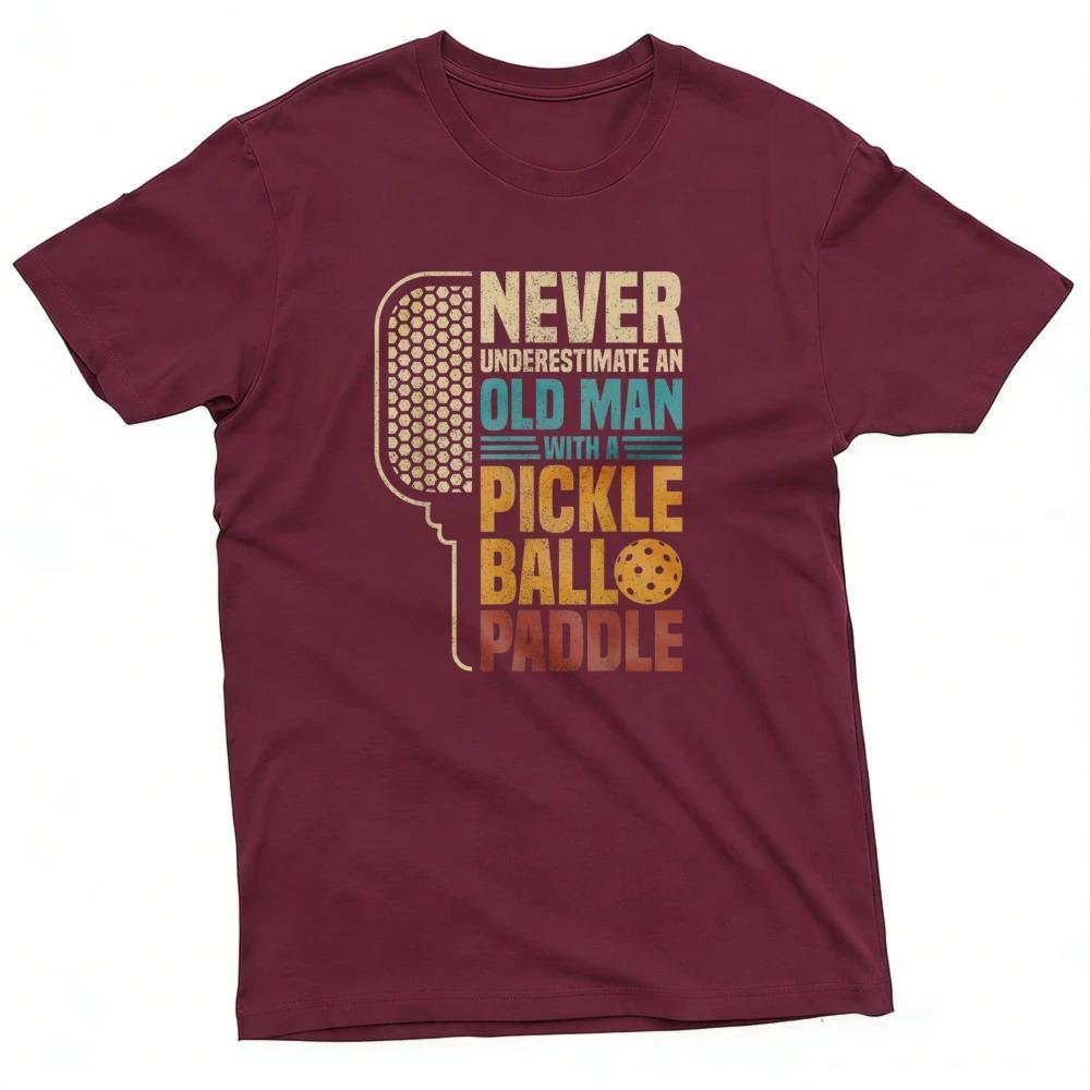 Never Underestimate An Old Man with A Pickleball Paddle Summer Men TShirt Casual Graphic Design for Outdoor Sports Tees