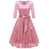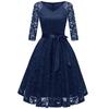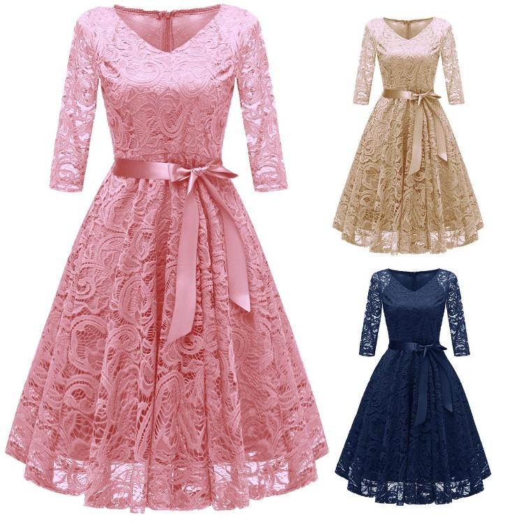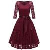 Vintage Floral Lace Bridesmaid Dress 3 4 Sleeve A Line with Ribbon Belt Tea Length Cocktail Party Evening Occasion Outfit Day Wear