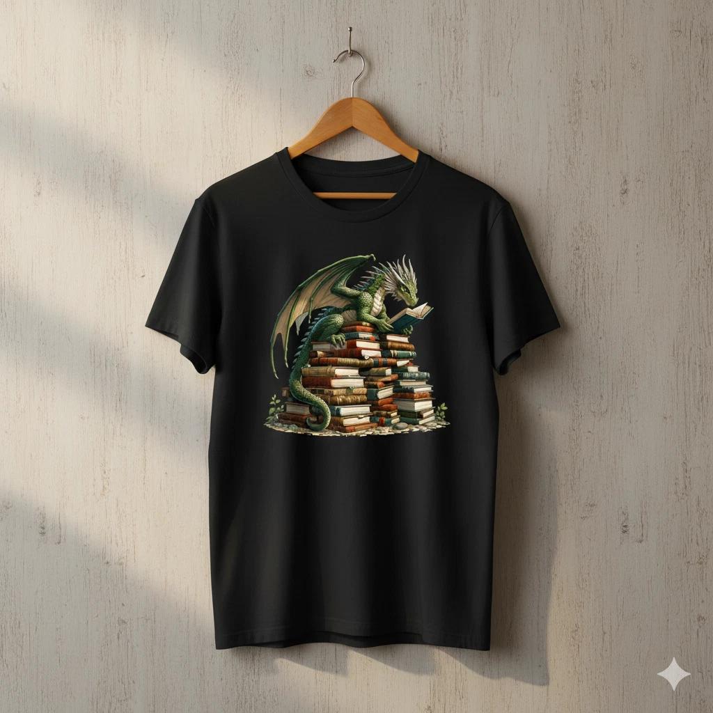Dragon Reading Books T-Shirt Fantasy Book Lover Graphic Tee - T327
