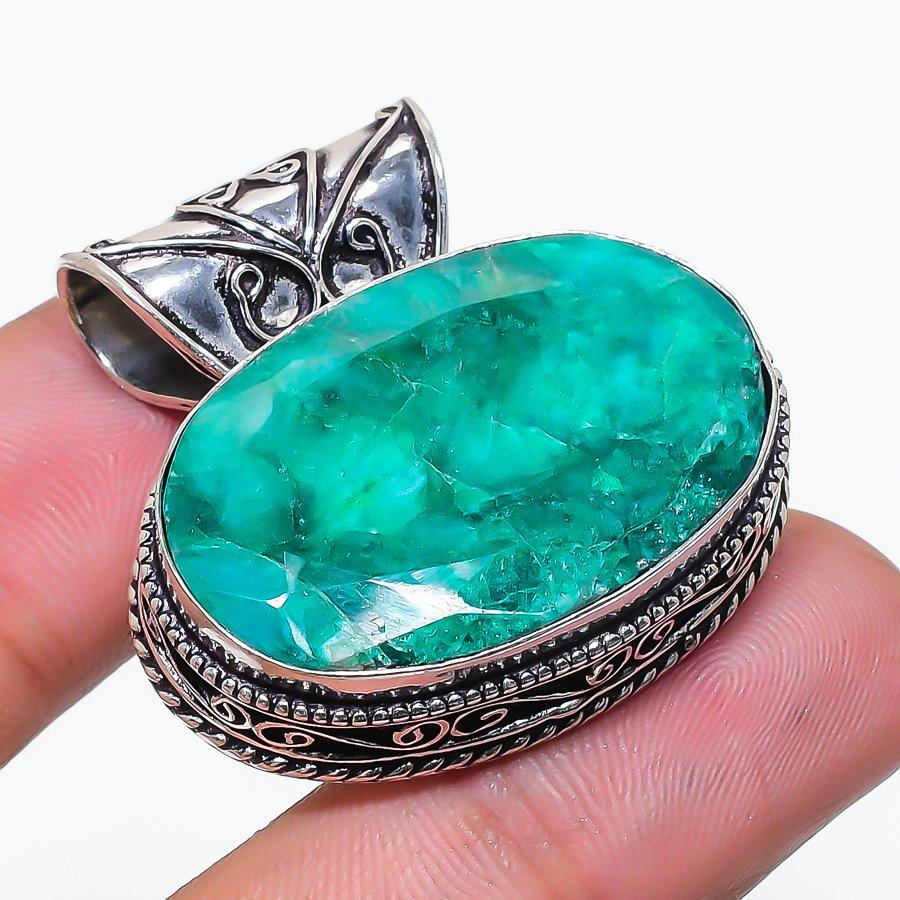 Skota Emerald (Simulated)Gemstone 925 Sterling Silver Jewelry Pendant 1.38" AP-14334