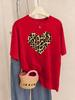 Summer Cotton TShirts Women Simple Leopard Print Heart Printing T Shirt ONeck Comfortable Loose Tops Street Womens Clothes