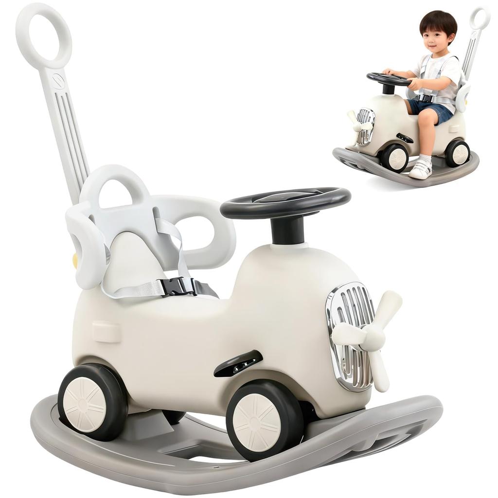 4-in-1 Rocking Horse, Multifunctional Ride-On Toy with Push Handle, Foot-PoweredRocking HorseBalance BikePushcart, 2-Way IndoorOutdoor Play, Kids'